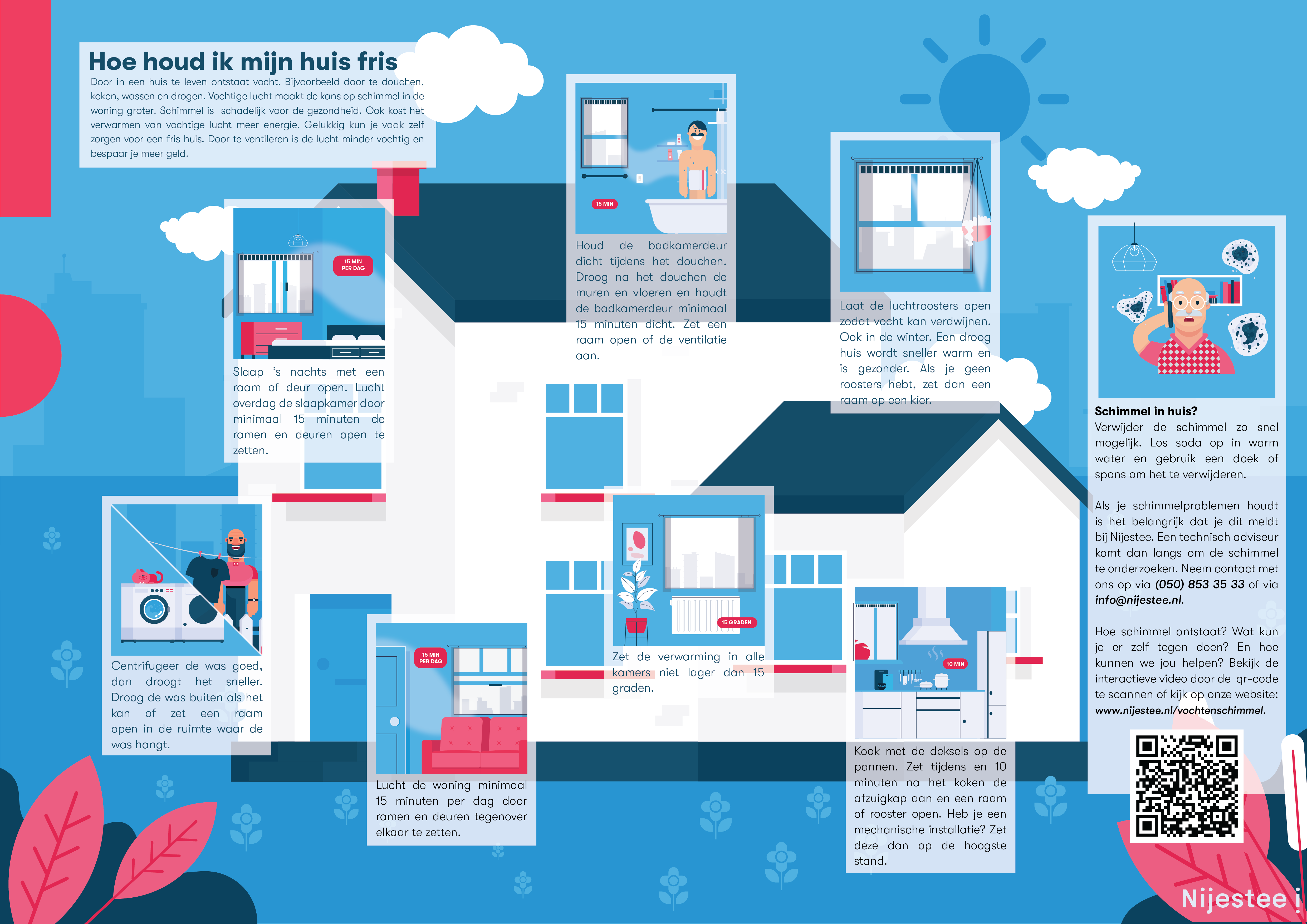 Wil je weten hoe schimmel ontstaat en wat je er zelf tegen kan doen? Download de flyer met tips . Do you want to know how you can keep your house fresh and mould free? Download the English version of the flyer.